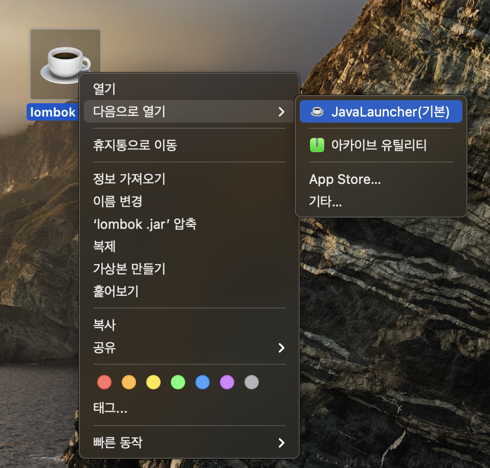 다운 받은 파일을 우클릭 -> 다음으로 열기 -> JavaLauncher로 열기를 누른다.